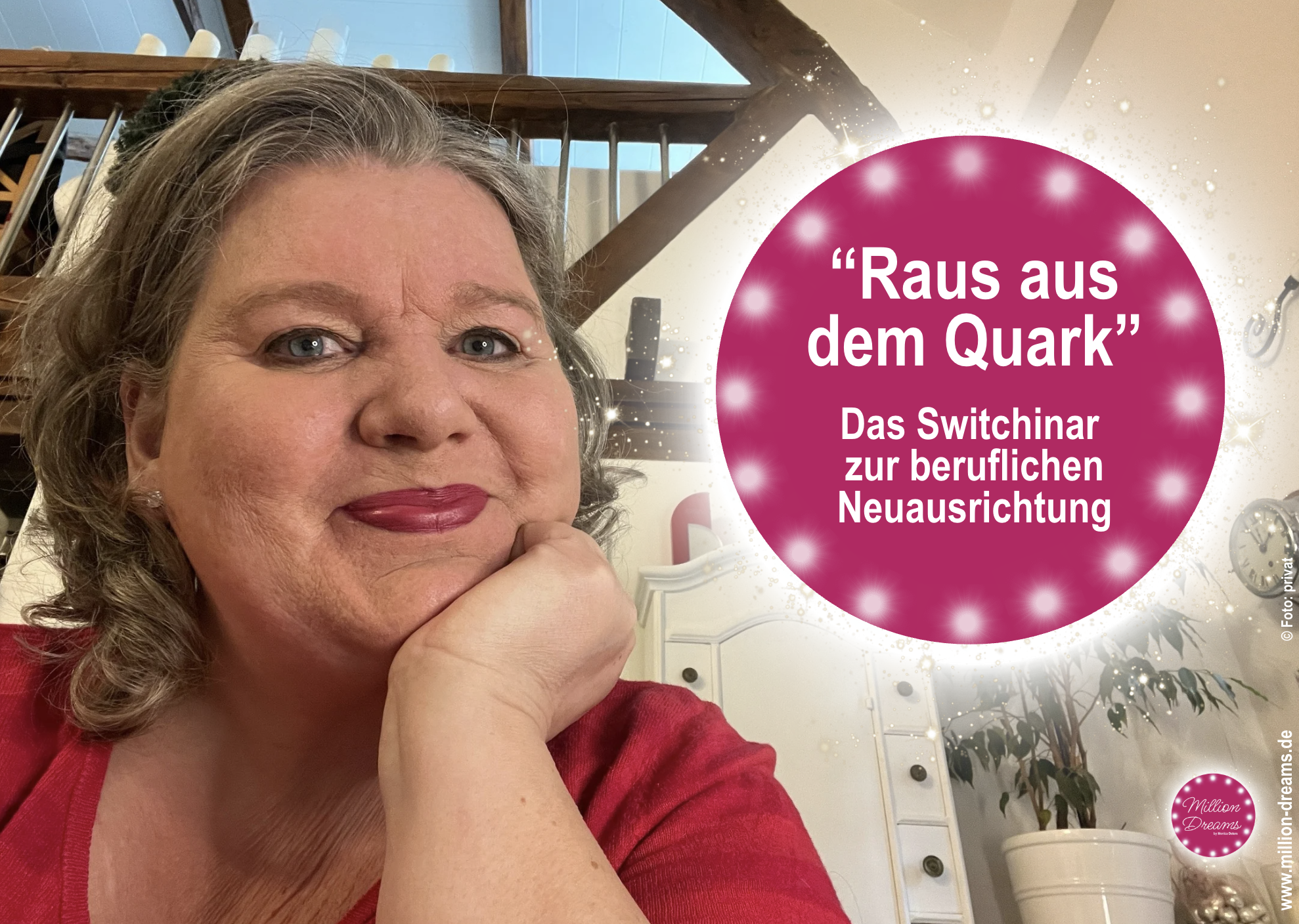 - ist Gründerin von MillionDreams, dem Unternehmen mit den regionalen und virtuellen Switch-Clubs, für eine flächendeckende Stabilität in stürmischen Zeiten.